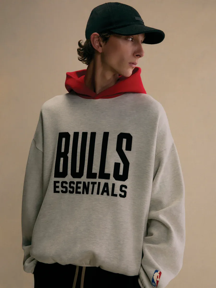 The Essentials Bulls Hoodie combines Fear of God’s minimalist luxury with the iconic energy of the Chicago Bulls. Crafted from premium heavyweight cotton-blend fleece, it delivers the perfect balance of comfort, structure, and streetwear style. The bold Bulls graphic sits alongside the clean Essentials branding, creating a statement piece that pays homage to sports heritage and contemporary fashion. Designed for everyday wear with an oversized silhouette, this hoodie brings together athletic pride and modern streetwear elegance.